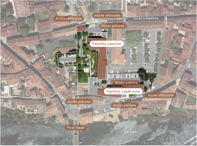 - Pavillon Lautrec sur la rue de la Madeleine, plus contemporain, en dialogue avec l’existant.